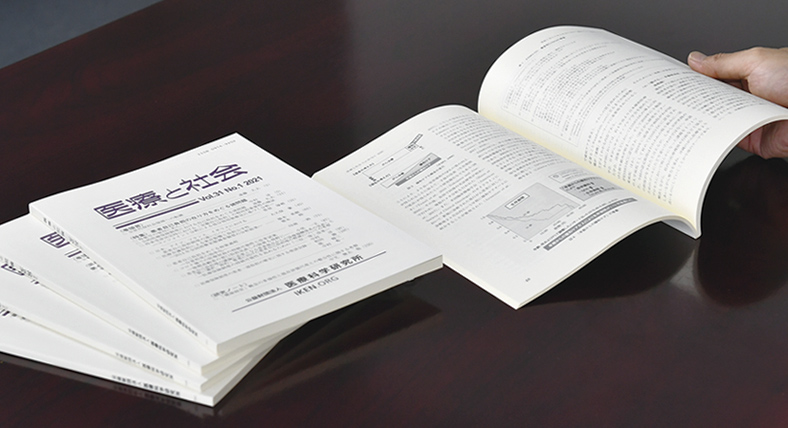 • 医療科学研究所では、医療と医薬品に関する社会科学的および人文科学的な調査研究を対象とした学術論文や、シンポジウムなどの事業を紹介する機関誌『医療と社会』を年4回定期刊行しています。また、『医研シリーズ』をはじめ、医療経済や医薬品流通などに関する専門書籍を刊行しています。